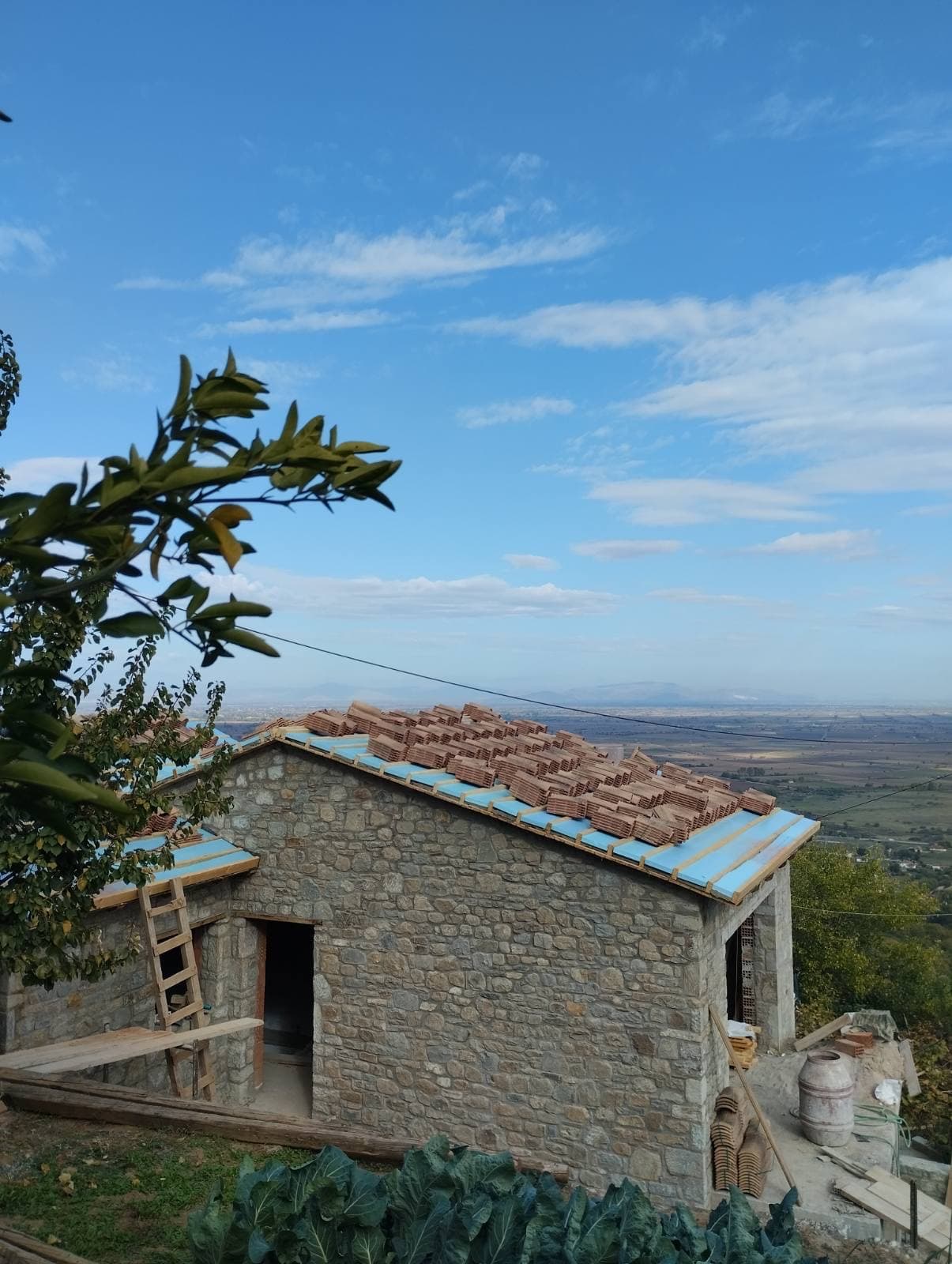 Ο πελάτης μας ζήτησε να φτιάξουμε την σκεπή του και να χτίσουμε με πέτρα τους τοίχους. Για την κατασκευή της σκεπής χρησιμοποιήθηκε ξύλο καστανιάς.