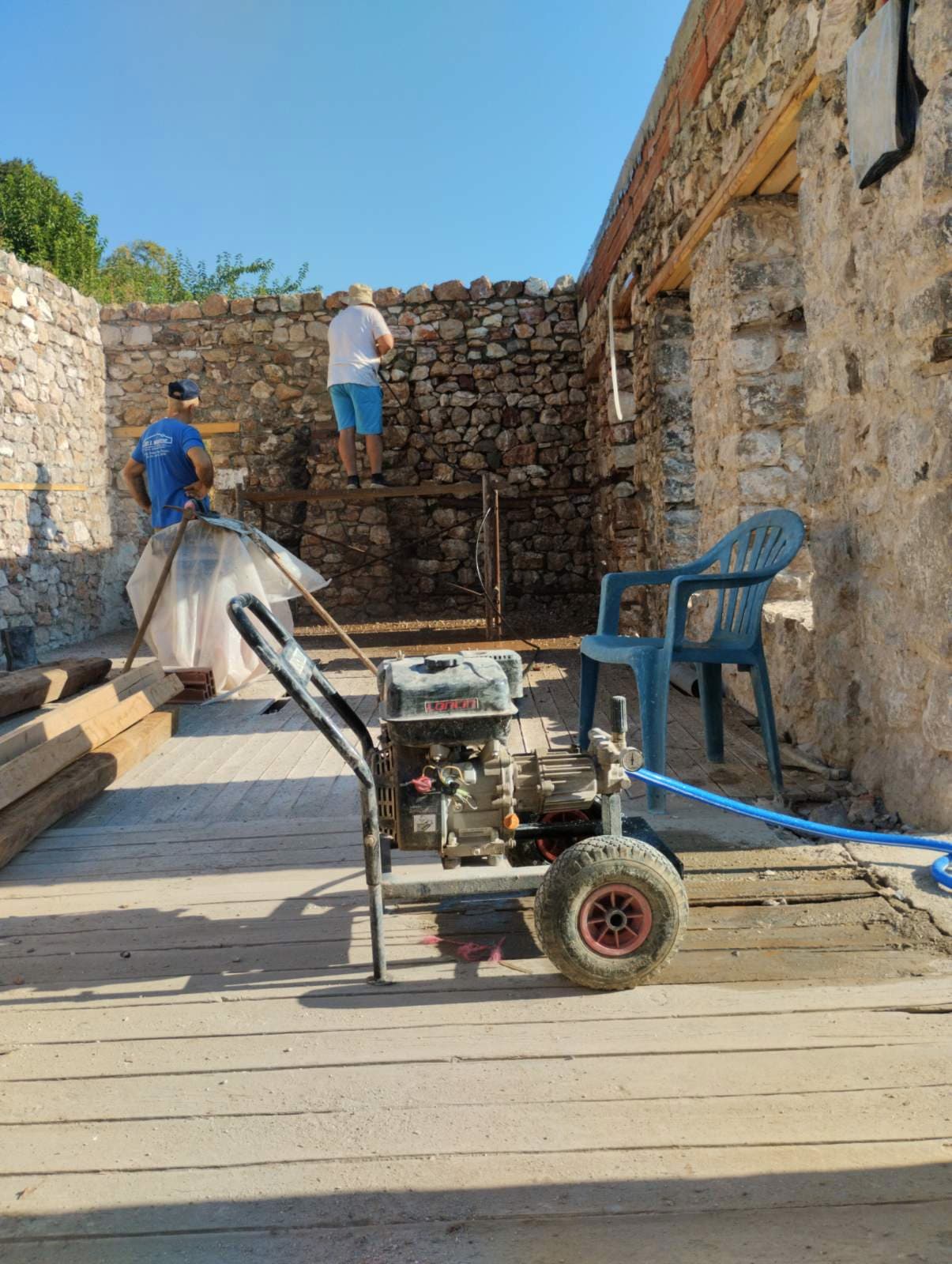 Πύργος Ιθώμης υδροαμμοβολη και αρμολογημα σπιτιού