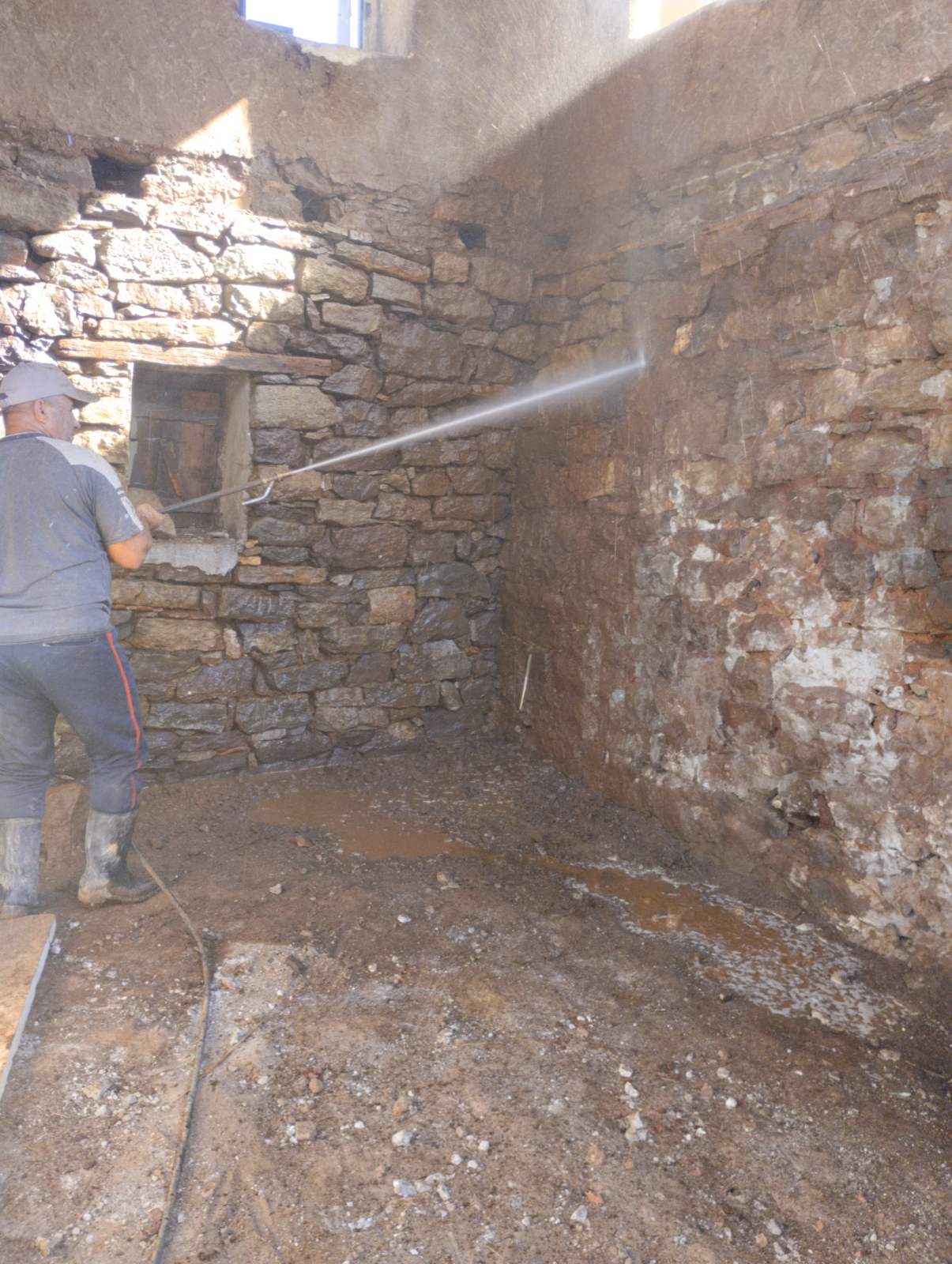 Πύργος Ιθώμης υδροαμμοβολη και αρμολογημα σπιτιού